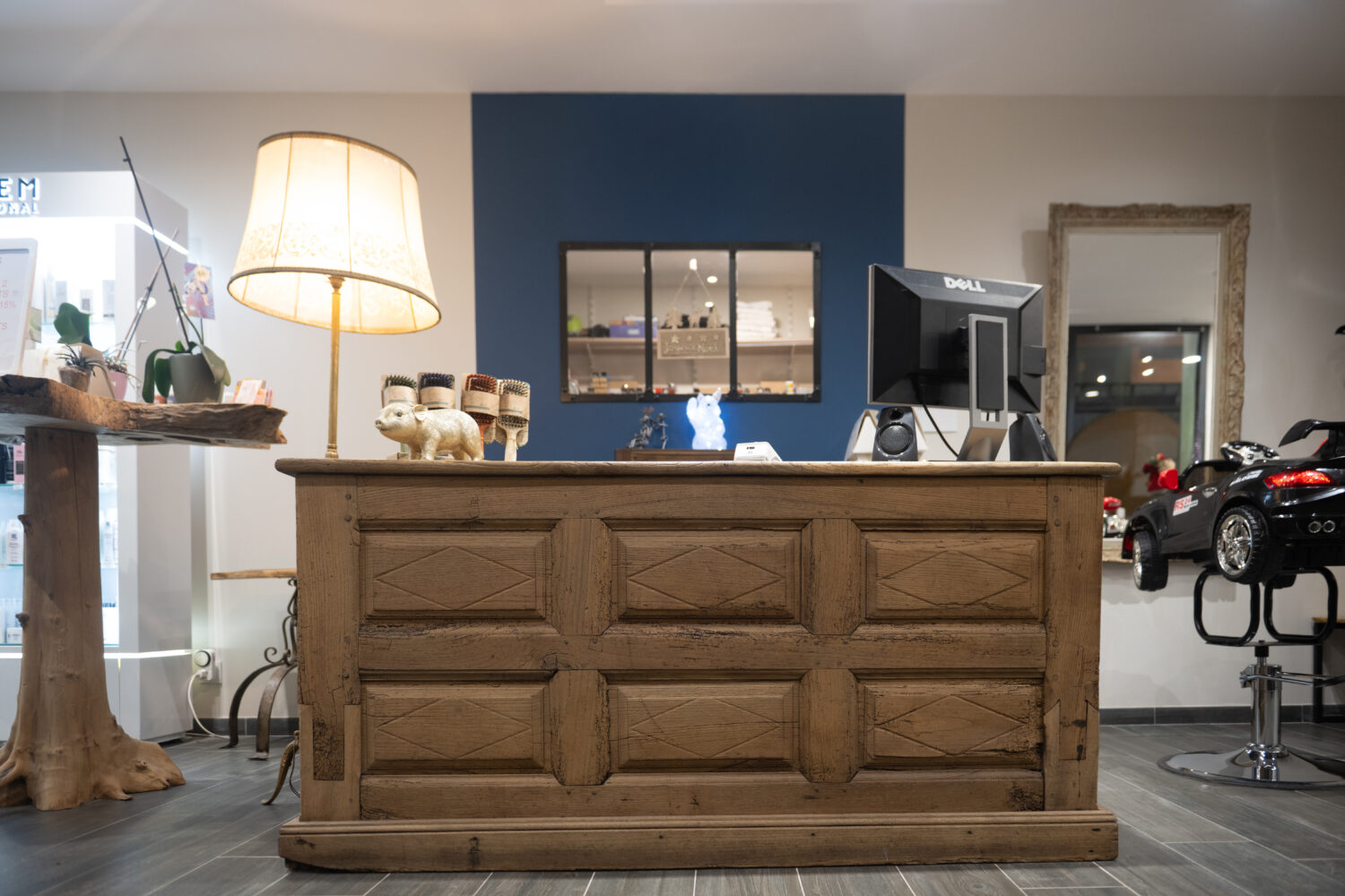 Salon de coiffure avec une belle décoration, un personnel au top.